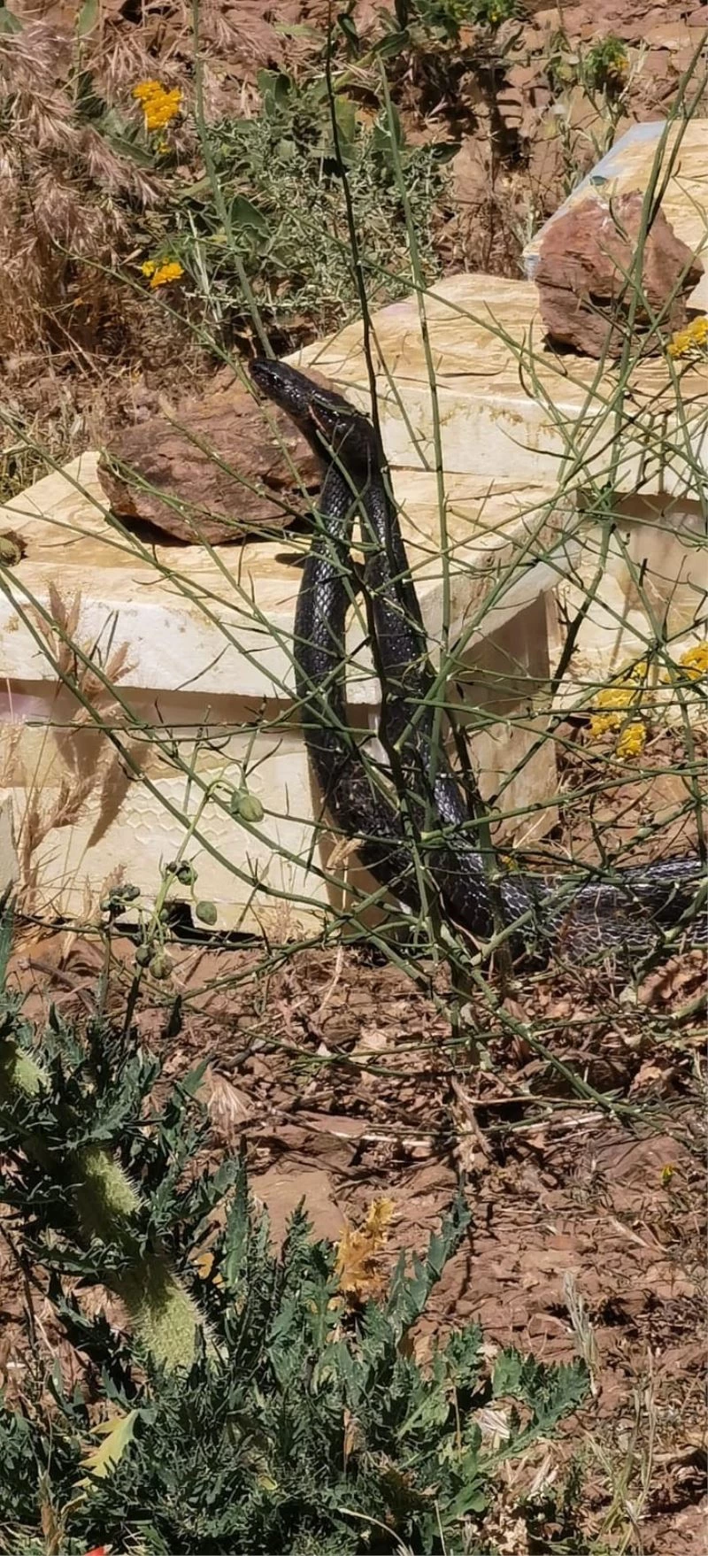 Bitlis’te bir arıcı tarafından yaklaşık 3 metrelik iki siyah yılanın dansı cep telefonu ile görüntülendi.