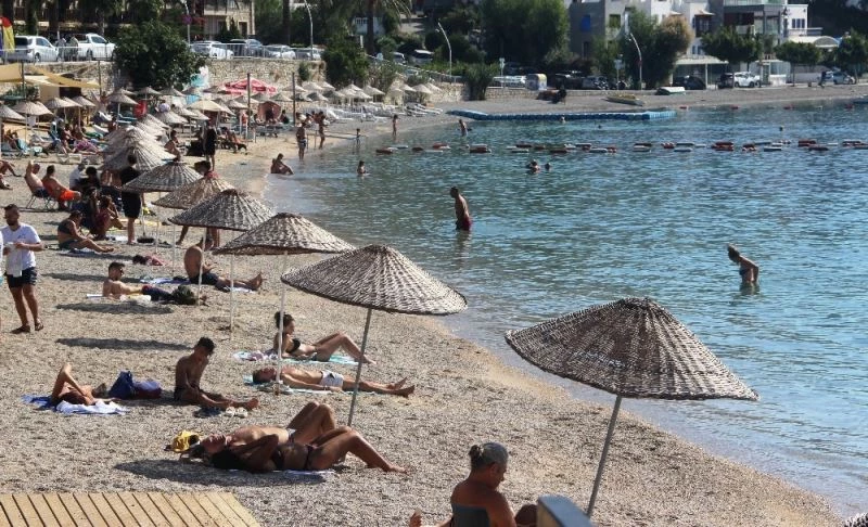 Bodrum’da, Ekim’in ayında sıcak ve güneşli hava nedeniyle sahiller yerli ve yabancı turistlerle doldu.