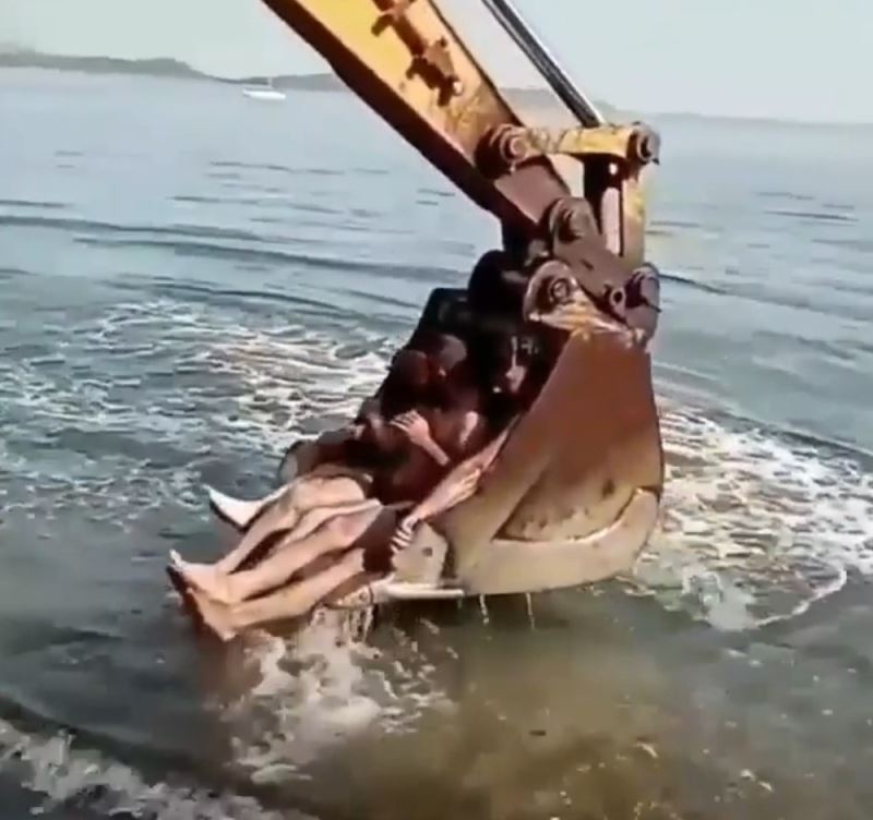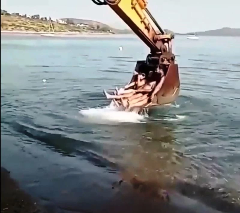 Bodrum’da ne zaman çekildiği bilinmeyen kepçe ile deniz keyfi görenleri şaşkına çevirdi. Ortakent Mahallesi Kabakum sahilinde kepçenin içine binen 1 çocuk 2 yetişkin su sporlarını başka bir boyuta taşıdığı görülüyor. Kepçenin içinde oturanlar 3 kişi kepçeyi süren operatör tarafından bir sağa bir sola hızlı bir şekilde döndürmesi renkli görüntüler oluşturdu. Kepçenin içerisinde bulunanların tehlikeli deniz keyfi bir kaza olmadan son bulduğu öğrenildi.