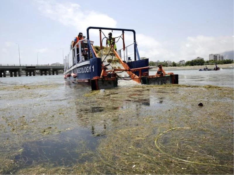 Antalya Büyükşehir Belediyesi, Boğaçayı yüzeyini saran sucul bitkilere yönelik temizlik çalışması başlattı. Suyun yaklaşık 1 metre altına kadar inebilen sucul bitki kesme makinesinin kestiği bitkiler, deniz yüzeyi temizleme teknesiyle (deniz süpürgesi) temizleniyor.
