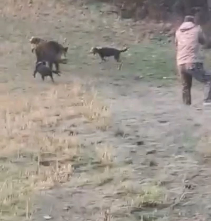 Bolu’nun Mudurnu ilçesinde ormanda köpekleriyle birlikte gezen avcıya domuz saldırdı. Saldırıya engel olmaya çalışan köpekleri yaralayan domuz, avcı tarafından öldürüldü.