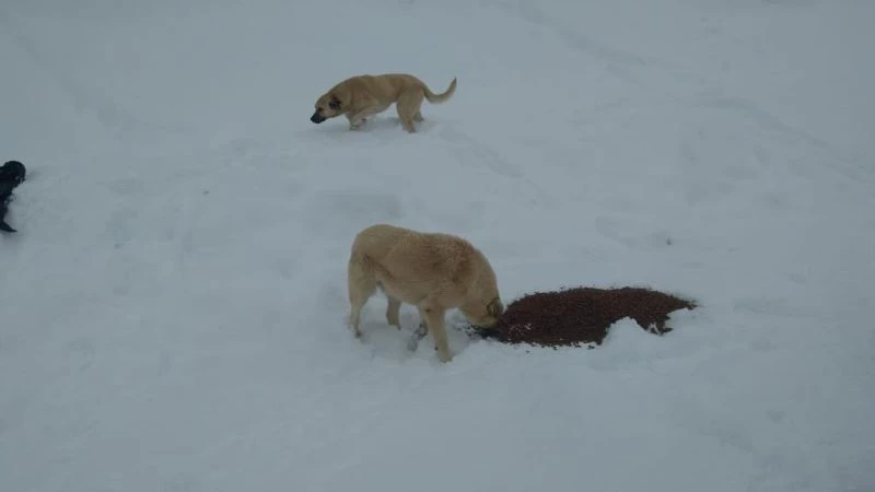 Bolu’da, sert geçen kış şartlarında yiyecek bulmakta zorlanan yaban ve sokak hayvanları için yaşam alanlarına yüzlerce kilo besi yemi, ot ve mama bırakıldı.
