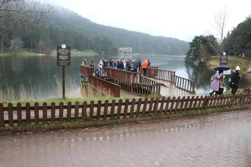 Türkiye’nin en gözde turizm merkezlerinden birisi olan ve Bolu’nun incisi olarak bilinen Gölcük Tabiat Parkı, yeni yılın ilk gününde tatilci akınına uğradı. Yeni yıla Bolu’da giren tatilciler yılın ilk gününde doğayla iç içe vakit geçirmek için geldikleri Gölcük’te yağmurlu havaya rağmen keyifli vakit geçirdiler. Göl çevresinde yürüyüş yapan tatilciler, bol bol fotoğraf çektirdi.