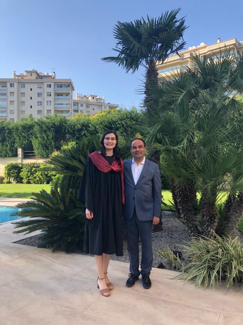 Kızının mezuniyet töreninde haklı bir gurur yaşayan İzmir Kent Hastanesi Kardiyoloji Uzmanı Doç. Dr. Sağcan, duygularını şöyle dile getirdi: “Kızım bütün üniversitelerin tıp fakültelerine gidebilecekken mezunu olduğum Ege Üniversitesini tercih etti. Bu çok anlamlıydı ve bana da çok değişik duygular yaşattı. Şimdi kızım başarılarla dolu bir öğrenciliğin ardından mezun oldu. Elbette ki çok mutlu ve gururluyuz. Bundan sonra da kızımın iyi bir insan ve iyi bir hekim olarak vereceği hizmetler asıl övüncümüz olacak. Kızımın ve tüm gençlerin yolu açık, şansları bol olsun” diye konuştu.