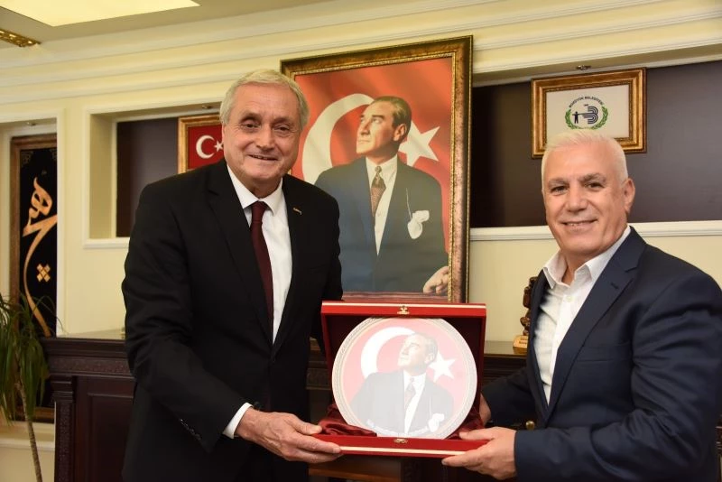 Sıcak ve samimi bir ortamda gerçekleşen ziyarette ikili karşılıklı olarak fikir alışverişinde bulunuldu. Ziyaretin sonunda Başkan Bakkalcıoğlu, Bozbey’e kendisini ağırlamaktan duyduğu memnuniyeti dile getirerek nazik ziyareti ve içten sohbeti için teşekkür etti. Başkan Bakkalcıoğlu Bozbey’e ziyaretinin anısına plaket takdiminde bulunarak nutuk kitabı ve Türk Bayrağı hediye etti.