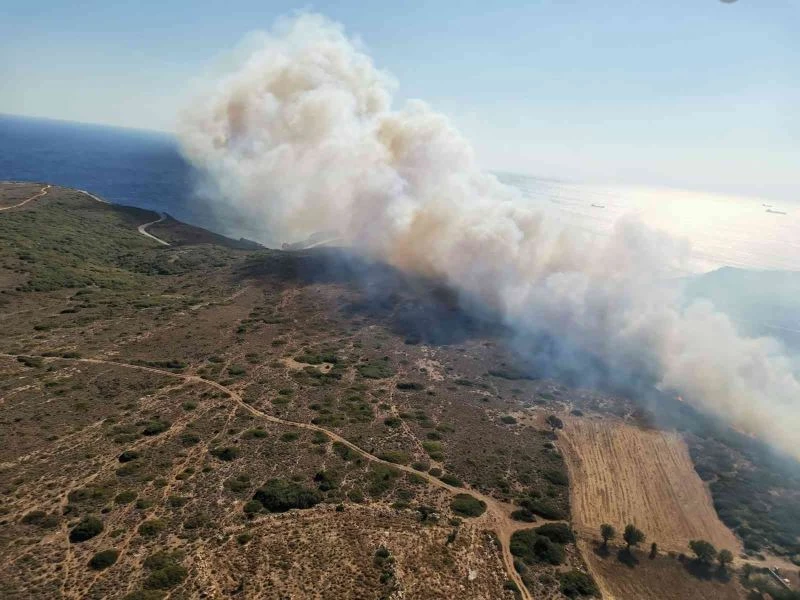 Çanakkale’nin Bozcaada ilçesinde saat 16.30 sıralarında çöplük alanda yangın çıktı. Dumanları gören vatandaşların durumu 112 Acil Çağrı Merkezine bildirmesi üzerine olay yerine Çanakkale Orman Bölge Müdürlüğüne bağlı ekipler sevk edildi. Yangına, 5 helikopter, 3 uçak, 2 ilk müdahale aracı, 4 arazöz, 5 belediye itfaiyesi ve 72 personel ile müdahale ediliyor.