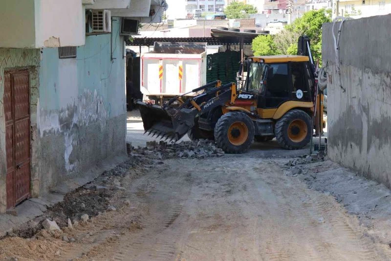 Bozova’da bozulmuş yollardaki parke taşları yenileriyle değiştiriliyor.