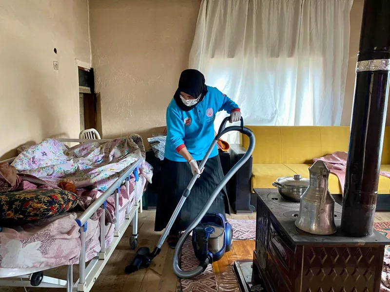 İhtiyaçların karşılanmasını sağlayan ekipler, vatandaşların ikametlerini temizleyip bakımını yapıyor.