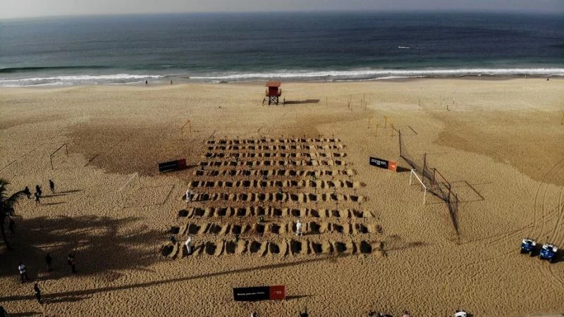 Brezilya’nın ünlü Copacabana plajında yeni tip korona virüs (Covid-19) salgınına karşı önlem almayan hükümete tepki amacıyla 100 mezar kazıldı.