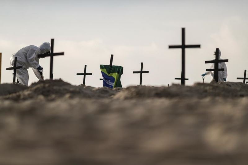 Yeni tip korona virüs (Covid-19) salgınında Latin Amerika’nın merkez üssü konumunda bulunan Brezilya’da bilanço ağırlaşıyor. Devlet Başkanı Jair Bolsonaro’nun virüsü umursamaması ve salgınla mücadele kapsamında kilitlenmelere karşı çıkması nedeniyle kendisine yöneltilen eleştiriler artıyor. Ülkenin ünlü Copacabana plajında hükümetin salgına yönelik mücadelesini protesto etmek amacıyla aktivistler tarafından sembolik mezarlar kazıldı. Kazılan 100 sembolik mezara salgında hayatını kaybeden 40 binden fazla kişi için temsili siyah haçlar dikildi.
