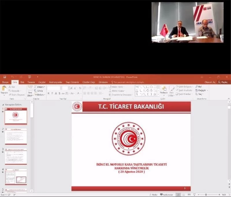 Bursa iş dünyasının eğitim ve gelişim platformu olan BTSO Akademi, pandemi döneminde firmaların ihtiyaç duyduğu bilgilerin paylaşıldığı online eğitimlerini sürdürüyor. ‘İkinci El Motorlu Kara Taşıtlarının Ticareti Hakkında Yönetmelik’ konulu eğitim Bursa Ticaret İl Müdürü İsmail Aslanlar’ın katılımıyla gerçekleştirildi.