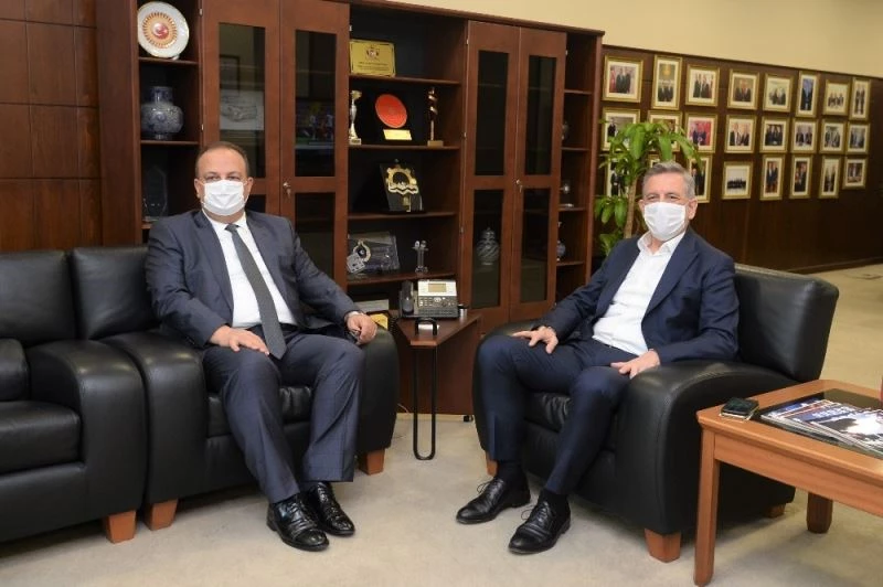 BTSO Hizmet Binası’nda gerçekleşen ziyarette pandemi döneminde Bursa ve ekonominin önemli gündem konuları değerlendirildi. Görüşmenin ardından açıklamalarda bulunan Bursa Valisi Yakup Canbolat, “Bursa Ticaret ve Sanayi Odamızın değerli başkanını ziyaret ederek pandemi sürecinde Bursa’daki durumu ve ekonomik süreçleri değerlendirelim istedik. 1,5 saate yakın süren kıymetli bir sohbet oldu. Sanayi üretimi ve çalışma hayatındaki son gelişmeleri istişare ettik. Pandemi sürecinin başından beri BTSO çok ciddi bir çalışma içerisinde. Odamız, Vefa Sosyal Destek Grubu içinde de aktif olarak yer aldı ve iş insanlarımız buradaki çalışmalarımıza çok önemli katkılarda bulundu. Bunun dışında üretim sektörünün ayakta durması ve özellikle yasaklı dönemlerde hangi sektörün, ne kadar çalışanla üretim yapacağı konusunda BTSO ile ciddi bir işbirliği yaptık.” dedi.
