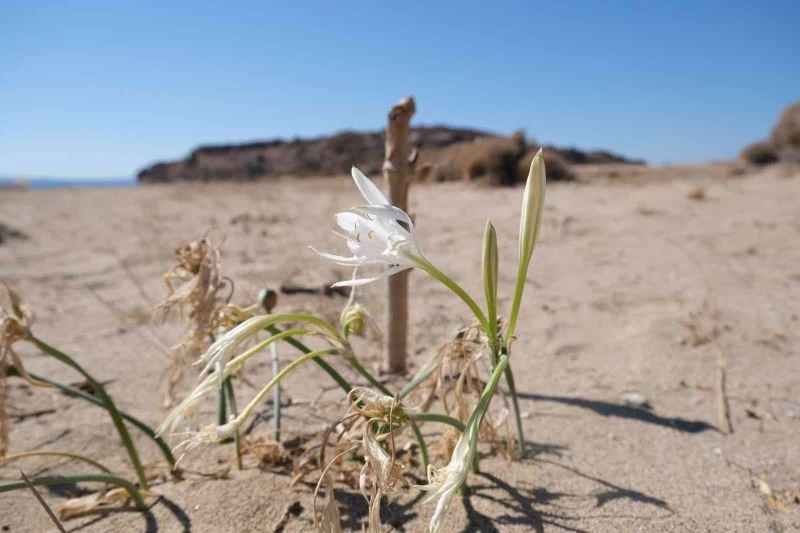 Her yıl temmuz sonu ve ekim ortalarına kadar Ayvalık’ın gözde sahillerinden Badavut ve Patriça’da kendini gösteren koruma altındaki bitki türü kum zambağı bu yıl yeniden çiçek açtı.