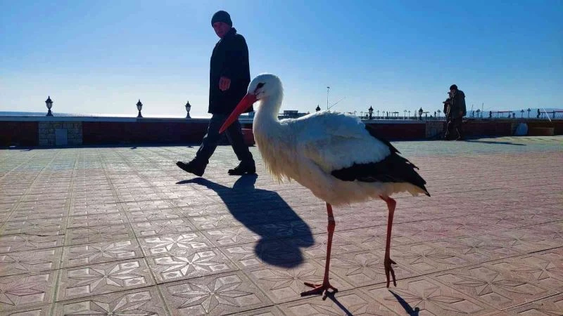 Zaman zaman sahil gezintisine çıkan leylek, vatandaşlarında yoğun ilgisiyle karşılaşıyor. Artık her yere yürüyerek giden ve şehrin maskotu haline gelen leylek, vatandaşlarla fotoğraf çekiliyor ve rahat rahat insanların ellerinden yem yiyebiliyor. Kentte insanların yakın ilgi ve alakasından dolayı leyleğin uçup başka bir yere gitmeye niyeti yok.
