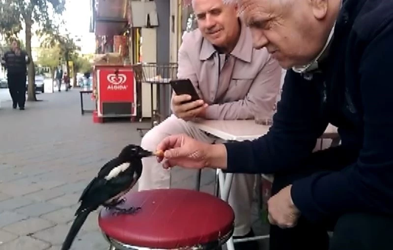 Saksağan, dükkâna gelen müşterilerin üzerine konarak, kendine döner ısmarlatana kadar ayrılmıyor. Mahallenin maskotu olan kuş, herkese kendine döner ısmarlatıyor. Her gün döner yemeye gelen saksağanın hatırı sayılır bir hayran kitlesi bulunuyor.