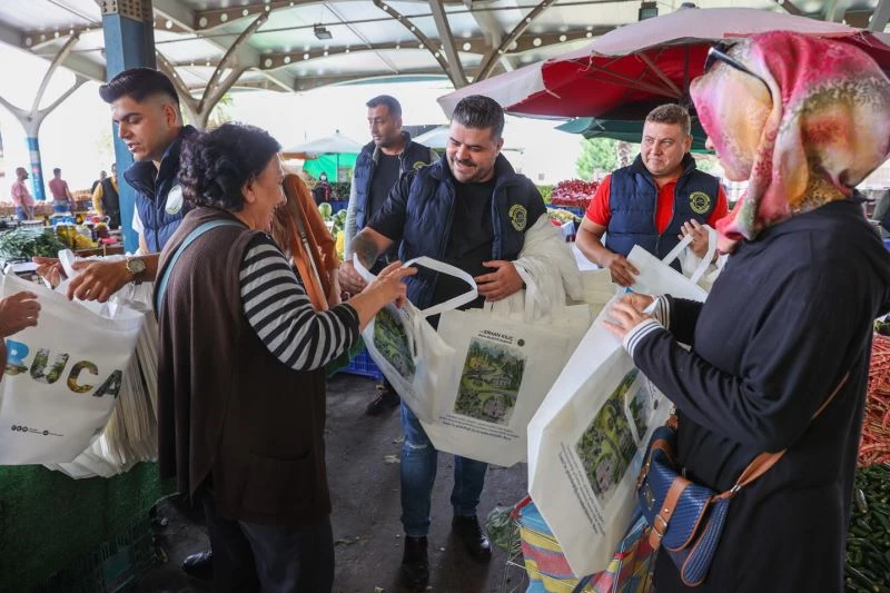Buca Belediyesi Kültür ve Sosyal İşler Müdürlüğü, çevre kirliliğine karşı duyarlılığı artırmak ve sıfır atık anlayışına dikkat çekebilmek için kentte yer alan pazar yerlerinde çanta dağıtımı yaptı.