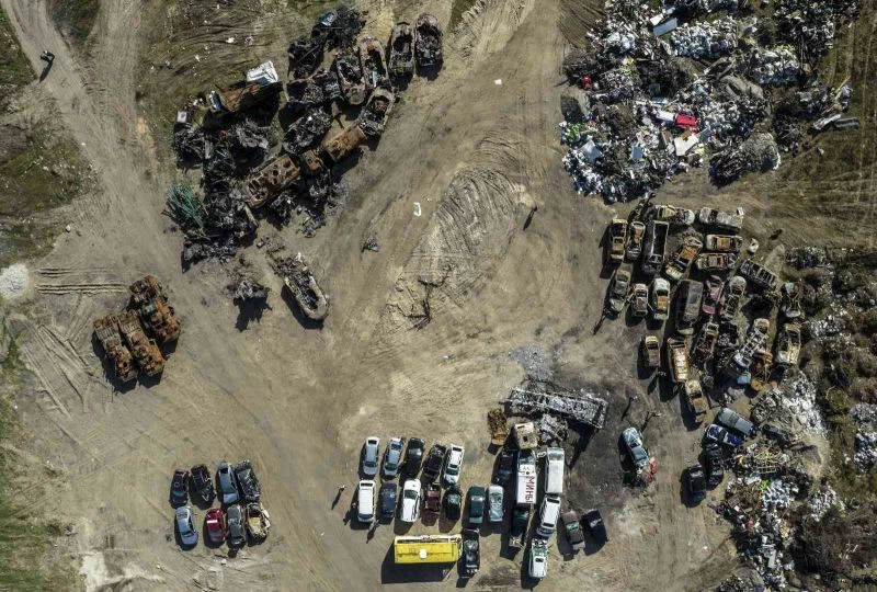Ukrayna’nın Bucha kentinde Rusya’nın saldırılarından kaçmak isteyen sivillere ait hasar alan onlarca araç, yollardan toplanarak boş bir araziye götürüldü. Sivillerden geriye kalan araçlar, saldırıların boyutunu gözler önüne serdi.