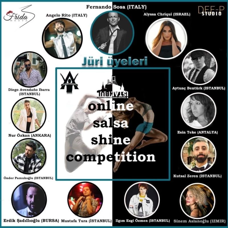 Dünyanın ve Türkiye’nin en ünlü salsa dansçılarının jüri üyeliği yapacağı yarışmada hakemler de belli oldu: Fernando Sosa (İtalya), Angelo Rito (İtalya), Alyssa Chriqui (İsrail), Aytunç Bentürk (İstanbul), Diego Avendano Ibarra (İstanbul), Nur Özkan (Ankara), Esin Teke (Antalya), Önder Pamukoğlu (İstanbul), Kutsal Zeren (İstanbul), Sinem Aslanoğlu (İzmir), Erdik Şadıllıoğlu (Bursa), Mustafa Tura (Adana), Ilgım Ezgi Özmen (İstanbul). 21 Ocak 2021’e kadar sürecek başvurularda yarışma detayları ve kayıt işlemlerine www.onlinesalsashinecompetition.org sayfasından ulaşılabilecek.