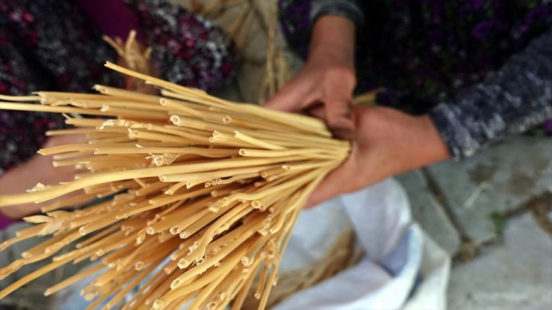 Bir taraftan bugday saplarini sekillendirerek sekerlik, ekmeklik, sepet ve süs esyalarina dönüstüren kadinlar diger taraftan da gençlere hasir örgü sanatini ögretiyor.