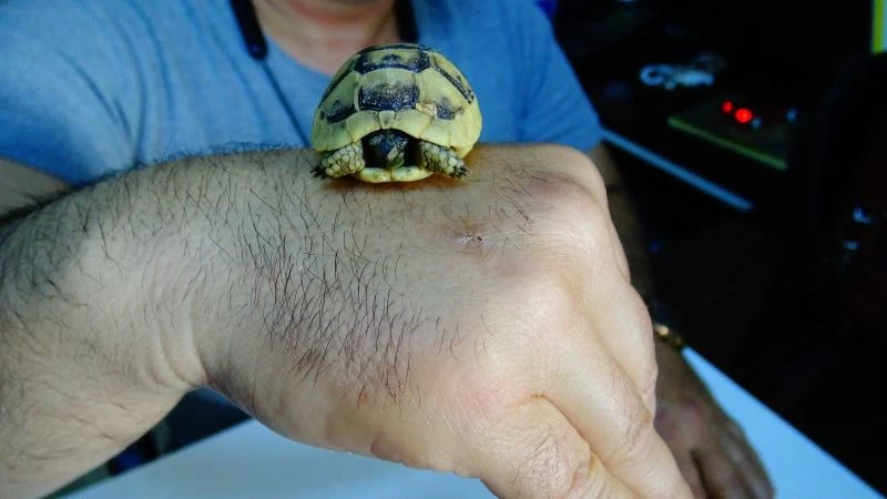Karaman’ın Ermenek ilçesinde bir vatandaş yürüyüş yaparken bulduğu ceviz büyüklüğündeki kaplumbağa yavrusunu milli parklar görevlilerine teslim etti.