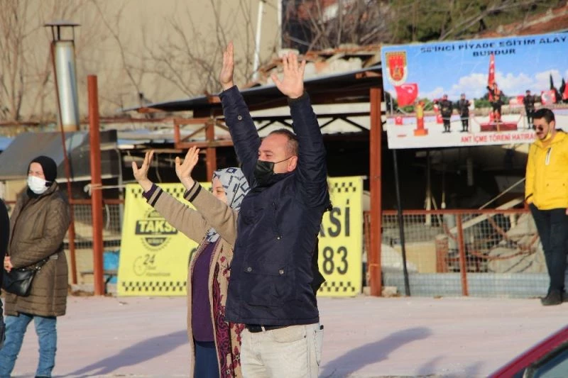 Çocuklarını askere teslim eden vatandaşlar, Burdur’da hatıra fotoğrafı çektirdikten sonra memleketlerine dönmek üzere yola çıktılar.