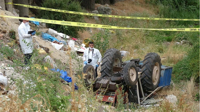 Traktör altında kalan sürücü, itfaiye ekibince çıkarıldı. Sağlık ekibi tarafından yapılan kontrolde sürücünün yaşamını yitirdiği belirlendi.