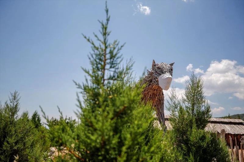 Merkezin kurucusu Öztürk Sarica, AA muhabirine yaptigi açiklamada, ziyarete açildiklari günden itibaren, alandaki ilgi çeken insan, Burdur Sirtlani, vasak ve kartal heykellerine maske giydirdiklerini söyledi.