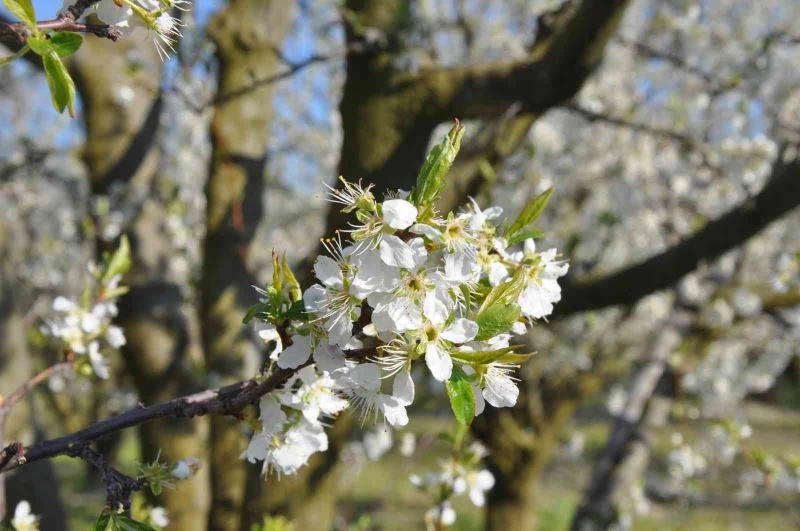 Erik bahçesinin sahibi Ramazan Çalışkan, “Ağaçların çiçek açma zamanı, hepsi gelinliklerini giydiler bakmaya doyum olmuyor. Yukarı bakarsak çiçek, yere baksak yeşil. Doğanın en güzel zamanı” şeklinde konuştu.