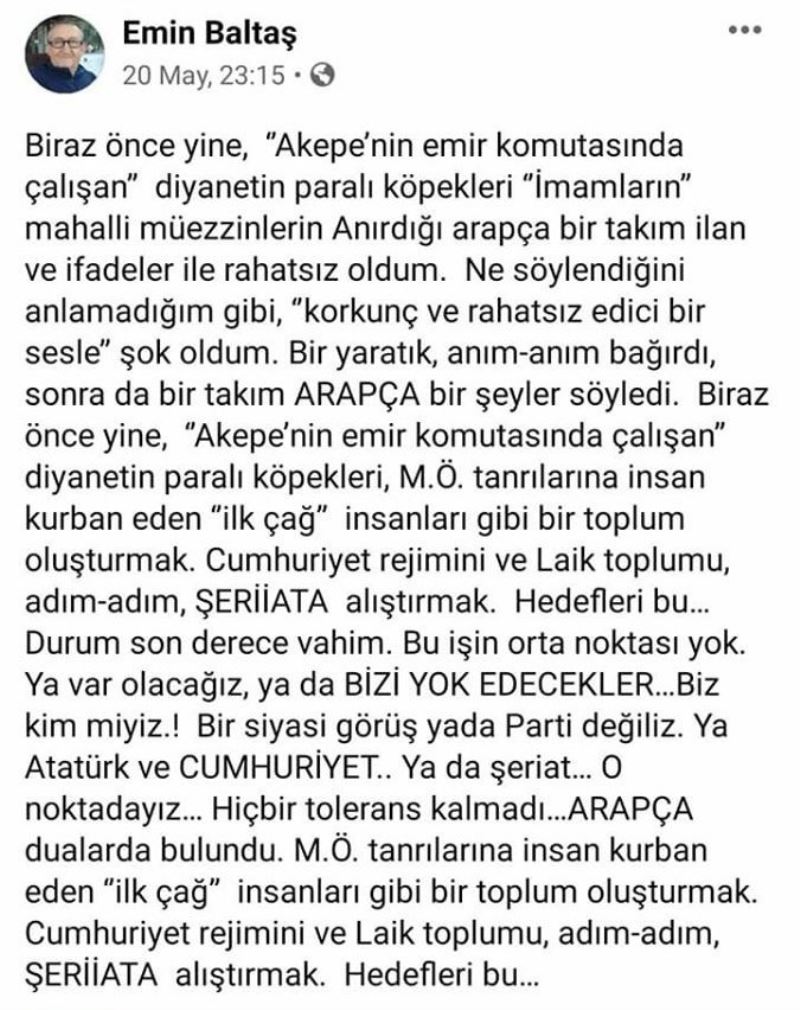 Milletvekili Yavuz Subaşı, sosyal medyadaki paylaşımı nedeniyle Emin Baltaş hakkında suç duyurusunda bulundu. Provokatif şahsı kınadığını belirten Milletvekili Subaşı, “Burhaniye ilçemizde kendini bilmez CHP üyesi ve delegesi bir müptezel içindeki kinini ve düşmanlığını güzel dinimiz İslama karşı çirkin ifadelerle sergilemiştir. Bu kişi hakkında dava açmış bulunuyorum” dedi.
