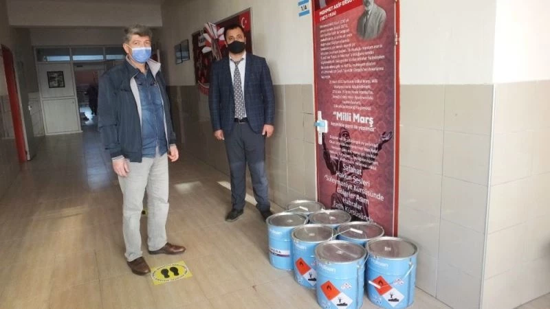 Burhaniye’de okullara hayırsever firmadan boya desteği