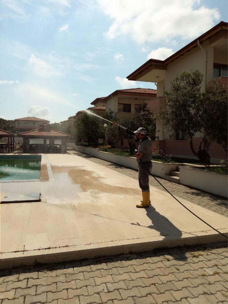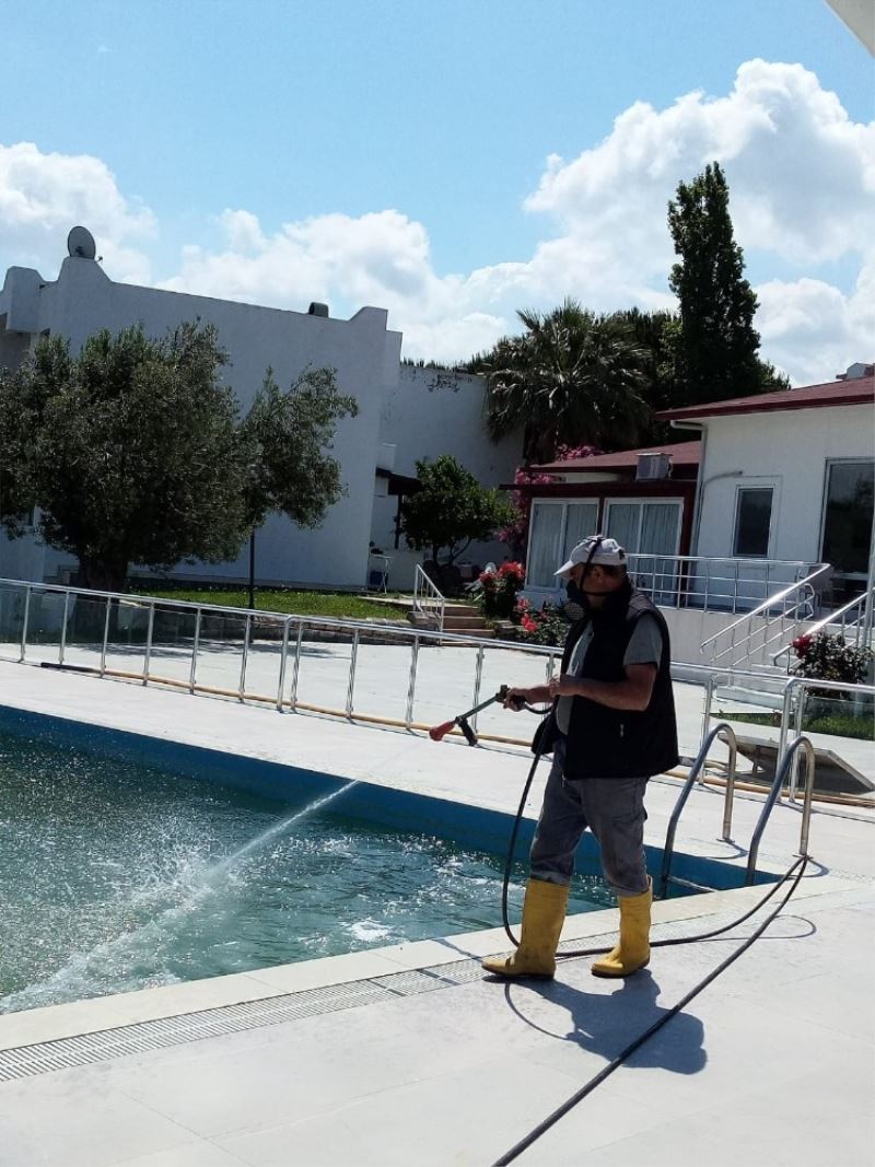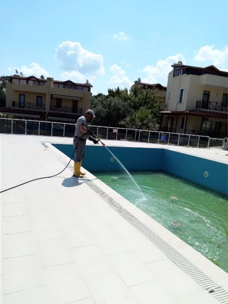 Burhaniye’de turizm sezonu hazırlıkları hummalı bir şekilde devam ederken, belediye ilçe genelindeki havuz ve sulak alanlarda sivri sineğe karşı ilaçladı.