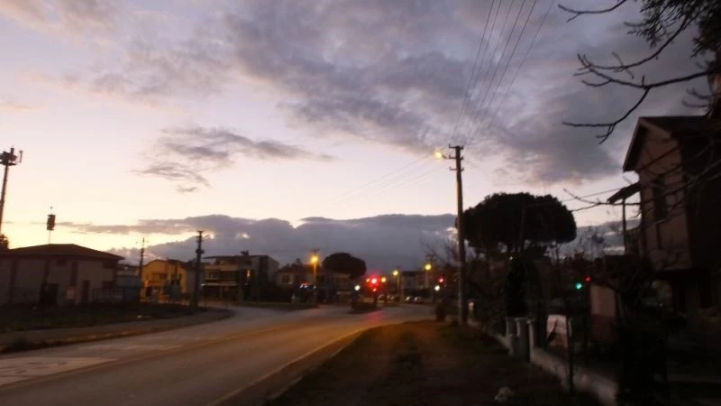 Burhaniye ilçesinde, yağmur bulutları gökyüzünü süsledi.