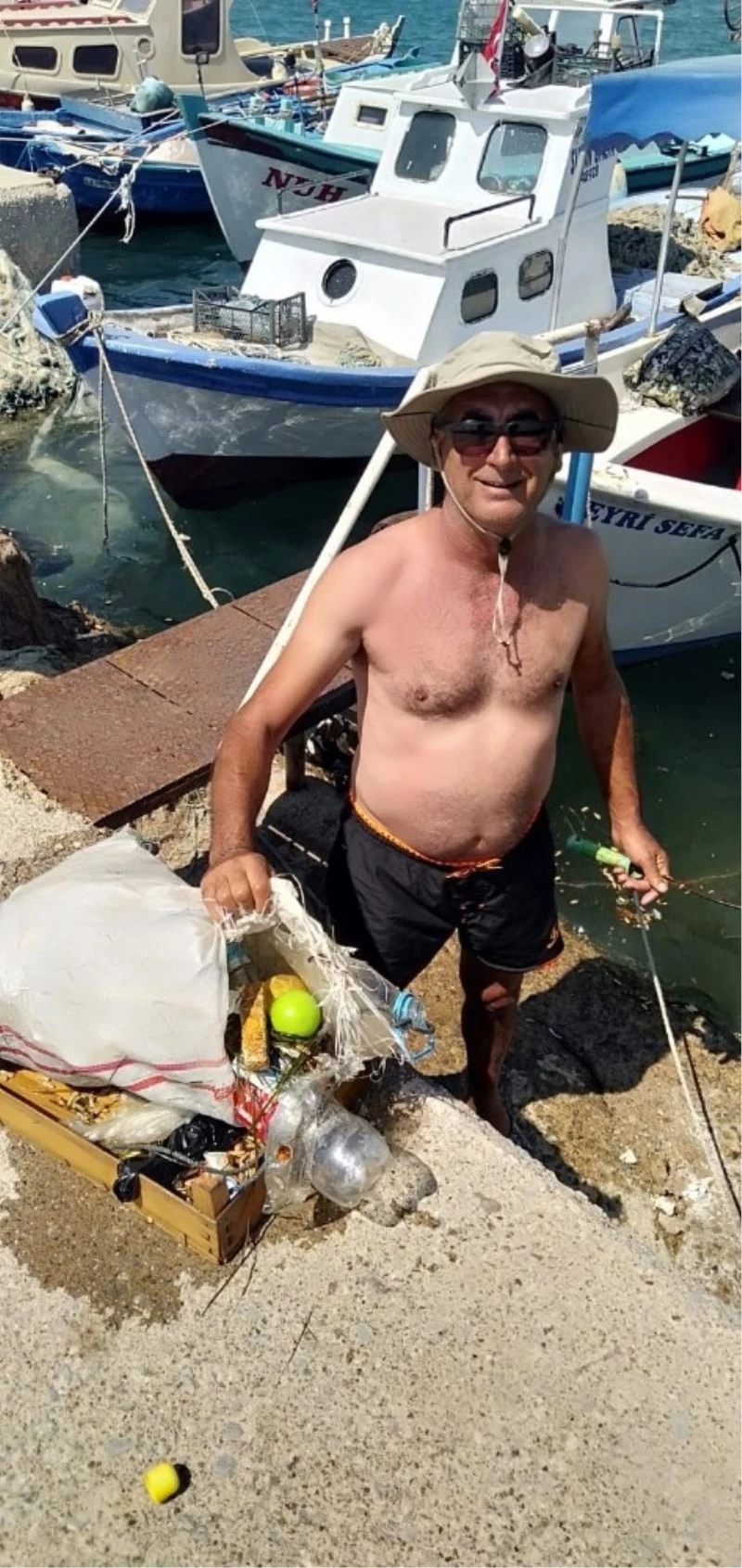 Burhaniye ilçesinde, amatör balıkçı Hasan Nurdoğan, teknesini bağladığı barınakta deniz temizliği yaptı. Deniz temizliğini her yıl yaptığını söyleyen balıkçı, vatandaşlardan denizi kirletmemelerini istedi.