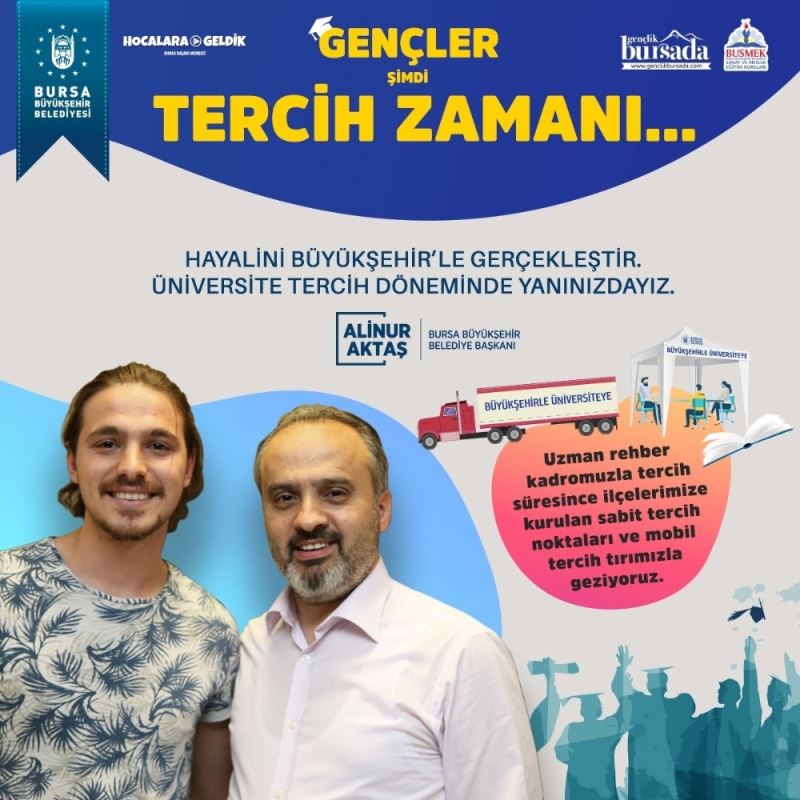 Doğru yapılan tercih sıralamasının sınav puanı kadar önemli olduğu süreçte, gençlerin mağdur olmaması için Büyükşehir Belediyesi gençlere profesyonel destek sunuyor. Uzman rehber kadrosuyla 6-14 Ağustos tarihlerindeki tercih maratonu süresince 17 ilçede sabit tercih noktaları kurulacak. Ayrıca günübirlik tercih noktaları ve mobil tercih tırları da ilçelerde gezerek, doğru üniversite seçimi ve istedikleri bölüme girebilmeleri için gençler yönlendirilecek.
