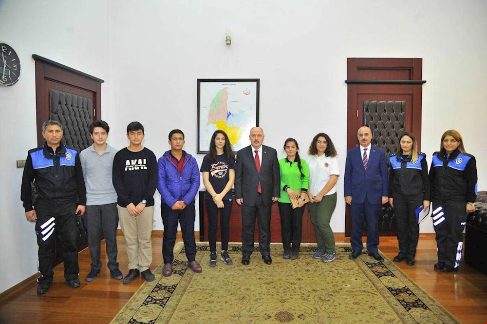 Osmaniye İl Emniyet Müdürlüğü Toplum Destekli Polislik Şube Müdürlüğünce yürütülmekte olan "Gelecek Ellerinde" isimli Çocuk ve Gençler Sosyal Koruma ve Destek Programı (ÇOGEP) kapsamında 17-21 Ekim tarihleri arasında Bursa-Çanakkale gezisine giden öğrencilerin bir gurubu, Vali Ömer Faruk Coşkun?u makamında ziyaret ederek teşekkür ettiler. Ziyarette, İl Emniyet Müdürü Nurettin Gökduman da yer aldı. Gezi izlenimlerini Vali Ömer Faruk Coşkun ile paylaşan öğrenciler, başta Vali Coşkun olmak üzere Osmaniye İl Emniyet Müdürlüğü ve gezinin düzenlenmesinde emeği ve katkısı olan herkese teşekkürlerini sundular. Öğrencilerle bir süre sohbet eden Vali Ömer Faruk Coşkun, gençlerin özellikle Çanakkale gibi tarihimiz açısından önemli bir kenti ziyaret etmiş olmalarından memnuniyet duyduğunu söyledi. Ziyaret sonunda Vali Coşkun, öğrencilere bundan sonraki yaşamlarında başarılar diledi.