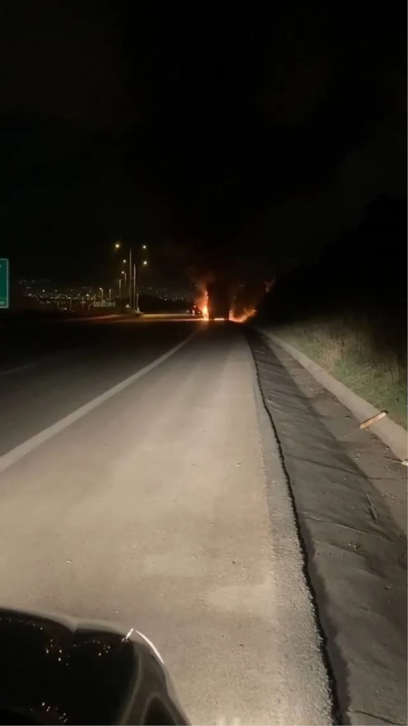 Bursa-İzmir-İstanbul otoyolu üzerinde meydana gelen yangında bir kamyon küle döndü.