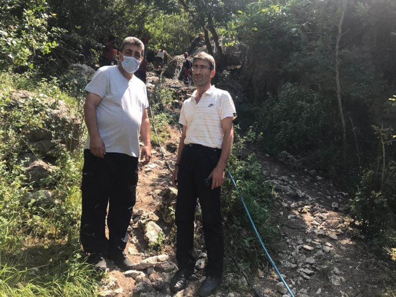 Bursa İznik’te düşme tehlikesi bulunan dev kaya çelik tellerle sarıldı