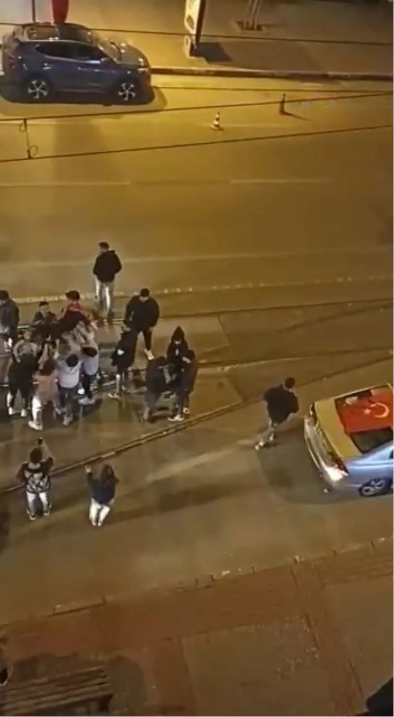 Bursa’da gençler vatani görevine gidecek arkadaşını havaya atarak kutladı. Cadde ortasındaki eğlenceye diğer araç sürücüleri kornalarla destek verdi.