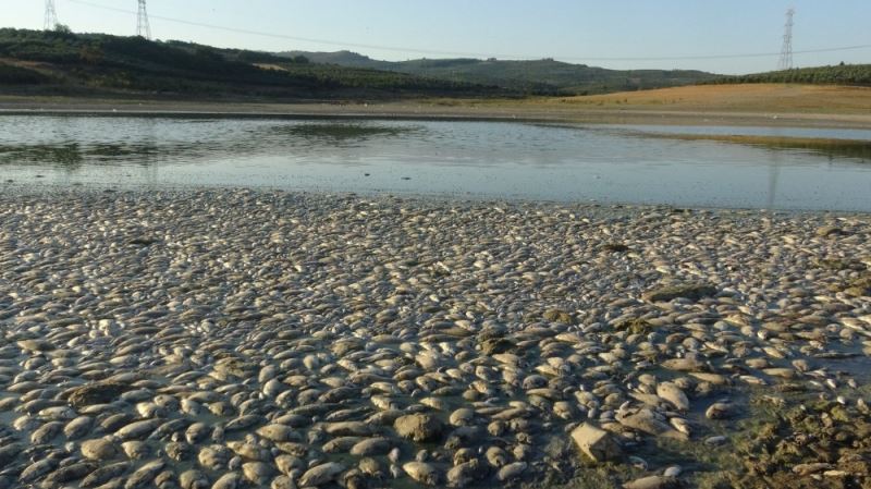 Bursa’nın Mudanya ilçesi Ülkü Mahallesi’nde bulunan ve çevredeki diğer mahallelerin de sulama için kullandığı gölet çok büyük ölçüde kurudu. Az miktarda kalan suyun seviyesinden ve oksijen yetersizliğinden kaynaklı binlerce balık kıyıya vurmaya devam ediyor. Balık ölümlerinden kaynaklı çevreye yoğun bir koku yayılırken, Bursa Büyükşehir Belediyesi ve Mudanya Belediyesi’nin geçtiğimiz gün yaptığı su takviyesi de yetersiz kaldı.