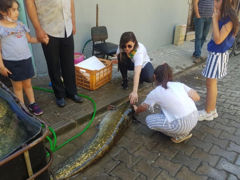 İznik Gölü’nde kaçak avcılığın önüne geçilince 30 yıl sonra boyu 2 metreyi bulan balık yakalandı. Vatandaşlar dev balıkla hatıra fotoğrafı çektirdi.
