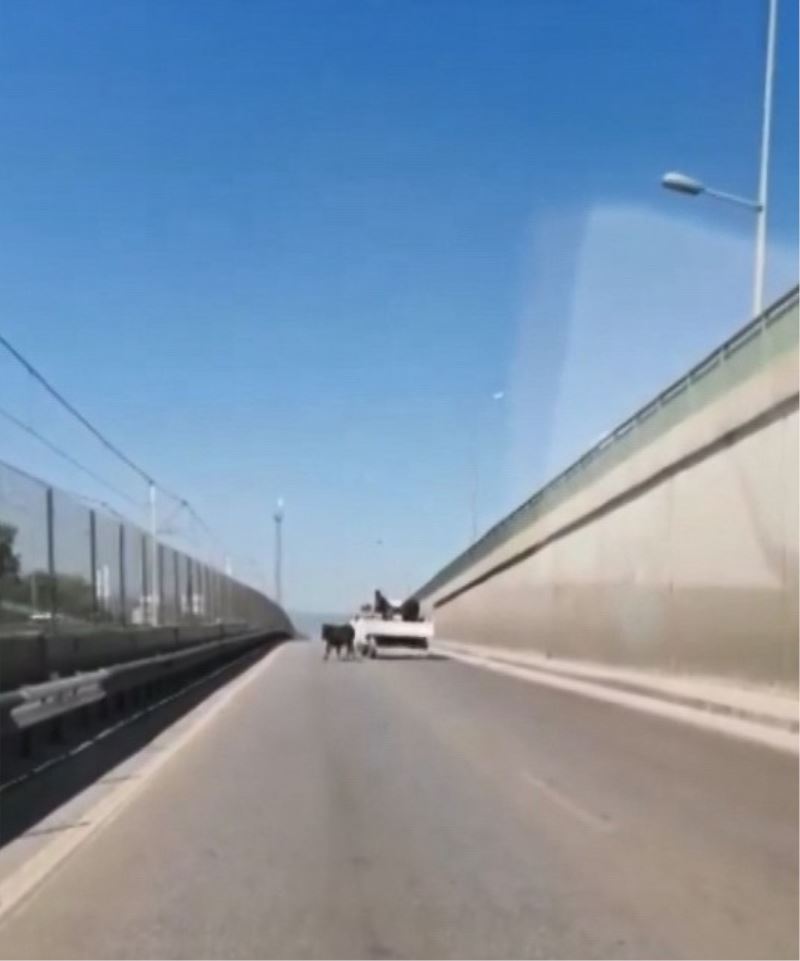 Kurban bayramının alışıla gelen görüntüleri Bursa’da da yaşandı. Sahibinin kurbanlık için aldığı danalar, ellerinden kurtulunca ortalığı birbirine kattı. Kurban pazarından aldığı danayı kesim alanına götürmeye çalışan kişinin elinden kaçan dana, ana yola çıkınca sürücüler büyük şok yaşadı. Ana yolun ortasında bir oyana bir buyana koşuşturan dana uzun uğraşlar sonucu yakalandı. O anlar ise bir otomobilin içerisindeki vatandaşın kamerasına yansıdı.