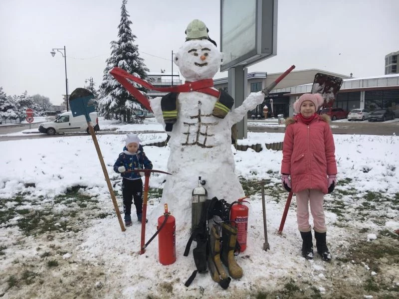 İnegöl’de 24 boyunca görevde olan itfaiye ekipleri, yağan karın ardından İtfaiye Müdürlüğü önüne kardan itfaiye eri yaptılar. İtfaiye eri giysisi ve kaskı takılan kardan adamı gören vatandaşlar, fotoğraf çektirerek anı ölümsüzleştirdiler.