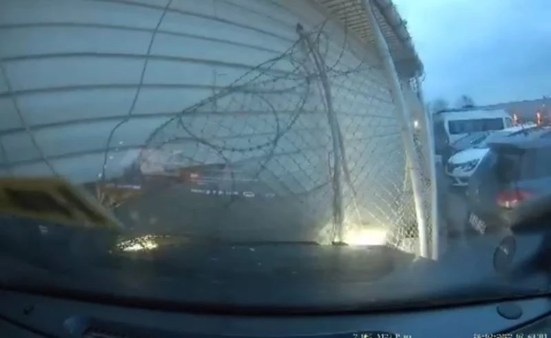 Bursa’da yağışlı havada kontrolden çıkan lüks cip bariyerleri aşarak fabrika otoparkındaki konteynerde çarparak durabildi. O anlar araç kamerasına anbean yansıdı.