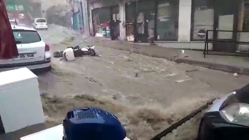 Bursa’da sağanak yağış hayatı felç etti. Tahtakale’de sel suları önüne ne kattıysa sürükledi. Bir kadın sel sularından son anda kurtarıldı.