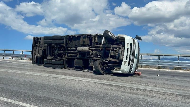 Yenişehir’den İznik istikametine yokuş aşağıya ilerleyen kamyon virajı alamayınca kontrolden çıkarak devrildi.