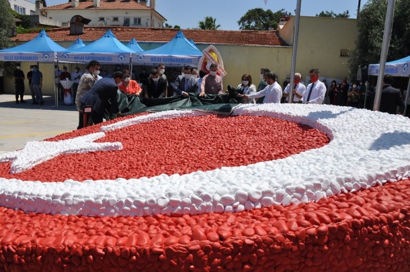 Saygı duruşuve İstiklal Marşı’nın okunması ile başlayan programın açılışında konuşan Milas İlçe Milli Eğitim Müdürü İsa Bal, “İlmek ilmek işlediğimiz, işlerken gururlandığımız, renkleriyle canlandığımız, heyecanla bitişini beklediğimiz bayrak figürünü tamamladık ve açılışını yapıyoruz. Bayrak figürümüzün yapımında emeği geçen herkese teşekkürlerimi ve minnetimi sunuyorum. Allah milletimizi korusun, birliğimizi ve dirliğimizi bozmasın” ifadelerini kullandı.