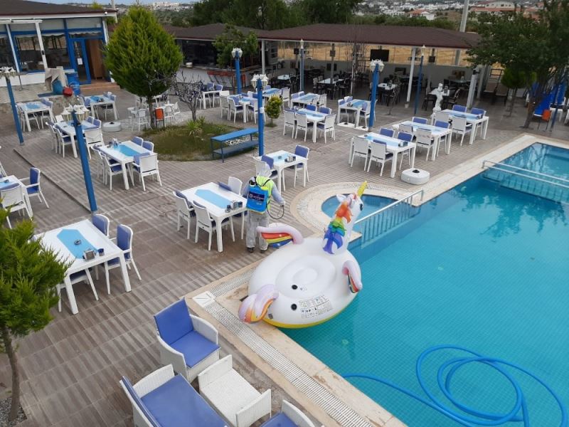 Aydın Büyükşehir Belediyesi ekipleri korona virüs salgını nedeniyle uzun süre kapalı kalan ve 1 Haziran’da açılacak olan mekanların dezenfeksiyon işlemini gerçekleştiriyor.