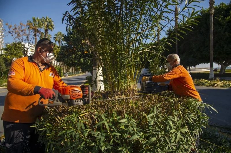 Büyükşehir Belediyesinden yapılan açıklamaya göre, Park ve Bahçeler Dairesi Başkanlığında görev yapan ekipler, hafta sonu yasağında kent genelindeki bitkilerin bakımını gerçekleştirdi. Ekipler, Adnan Menderes Bulvarı ve Kültür Park’taki palmiyeleri budadı. Yine Adnan Menderes Bulvarı üzerindeki refüjde yer alan ve dalları uzadığı için kirliliğe ve trafik görünürlüğünün azalmasına sebep olan zakkumlar ve turunç ağaçları budandı.