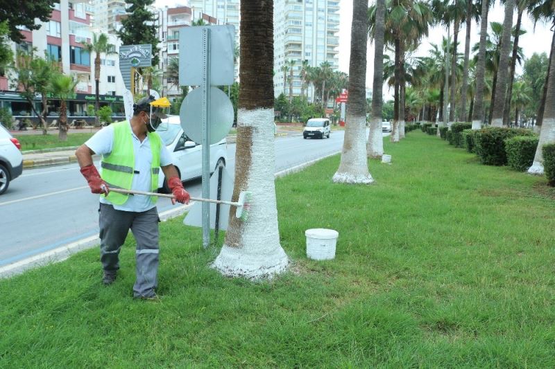 Yeni oluşturulan 10 kişilik boyama ekibi de Mersin’in karakteristik bitkisi olan palmiyelerin gövdelerinde beyaz şerit boyaması yaparak, hem ağacı zararlı haşerelerden koruyor hem de caddelerde görsel ve estetik bir seyir zevki sunuyor. Ekipler, özellikle İsmet İnönü ve Adnan Menderes bulvarları üzerindeki kaldırım ve refüj içindeki palmiyelerin boyama çalışmasını titizlikle yürütüyor. Palmiyelerin şerit boyama çalışmasının kent merkezinde olduğu gibi ilçelerde de eş zamanlı olarak yürütülmesi planlanıyor.
