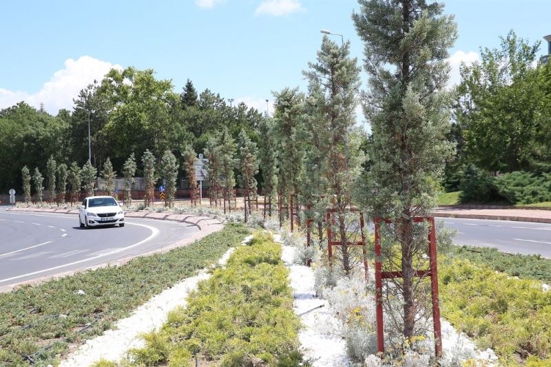Bu kapsamda, Büyükşehir Belediyesi Park, Bahçe ve Ağaçlandırma Daire Başkanlığı ekiplerince ekolojik dönüşüm çalışmalarıyla çok suya ihtiyaç duyan çim yerine daha az suya ihtiyaç duyan ama görselliği çok daha güzel olan çalı grubu bitkileri orta refüjlerde ve orta refüj kavşaklarında dikildi. Bu sayede hem su tasarrufu sağlandı, hem de Kayseri’nin güzelliğine güzellik katıldı. Ayrıca 15 Temmuz Bulvarı başta olmak üzere, pek çok kavşakta ve bulvarda ağaçlandırma ve peyzaj uygulamaları çalışmaları yapıldı. Buna göre 543 adet yapraklı ağaç, 700 adet ibreli ağaç, 212 bin 448 tane hercai menekşe gibi birçok dikim gerçekleşti.